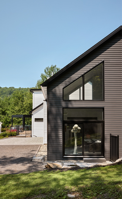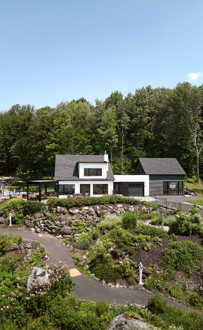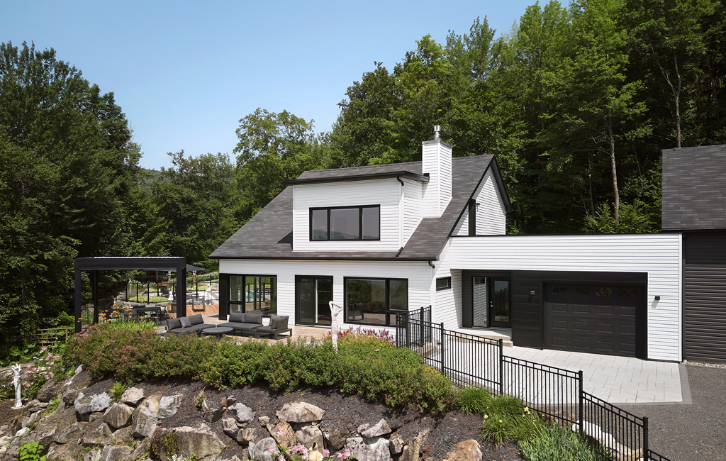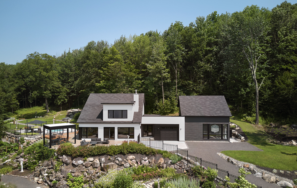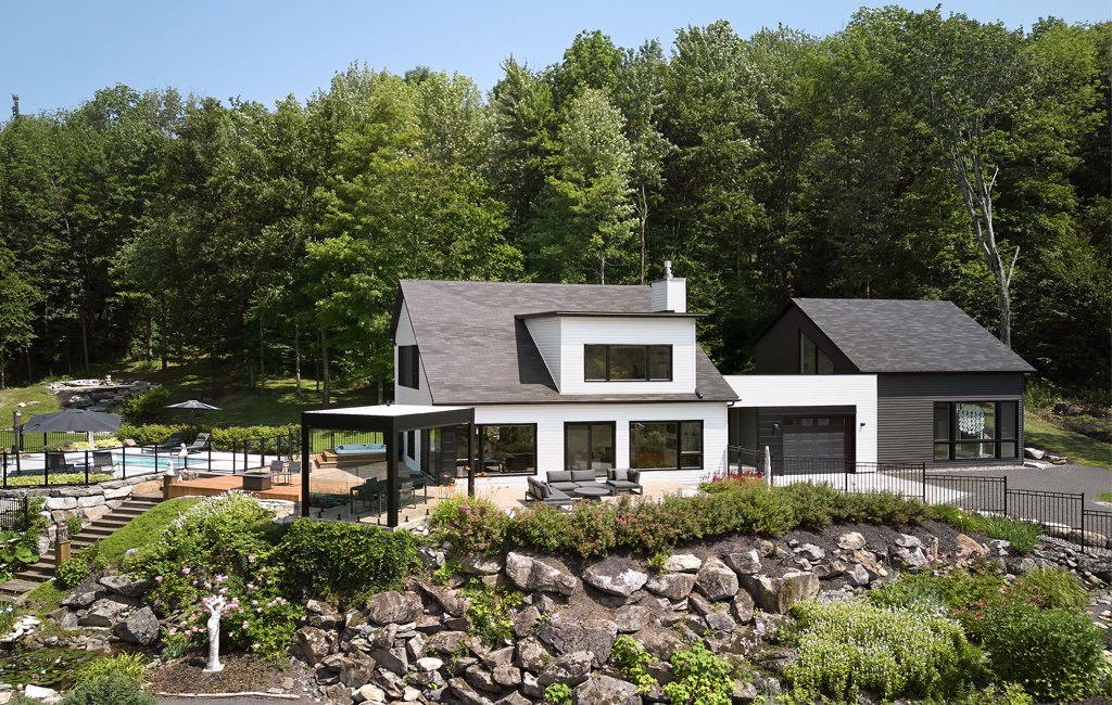 Fièrement déposée en face du lac Bromont, cette résidence secondaire aux accents champêtres devait subir quelques transformation afin de devenir la résidence principale. Ses propriétaires qui, sans vouloir la dénaturer, rêvaient d’optimiser et d'agrandir ses espaces et la rendre conforme à leurs aspirations et à leurs besoins.