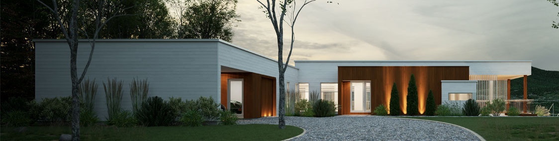 L’amalgame de bois blanc et de bois naturel, typique des constructions scandinaves, se veut la pierre angulaire de ce magnifique projet résolument moderne. Le toit plat, disposé sur différents niveaux, donne une impression de texture à l’ensemble.
